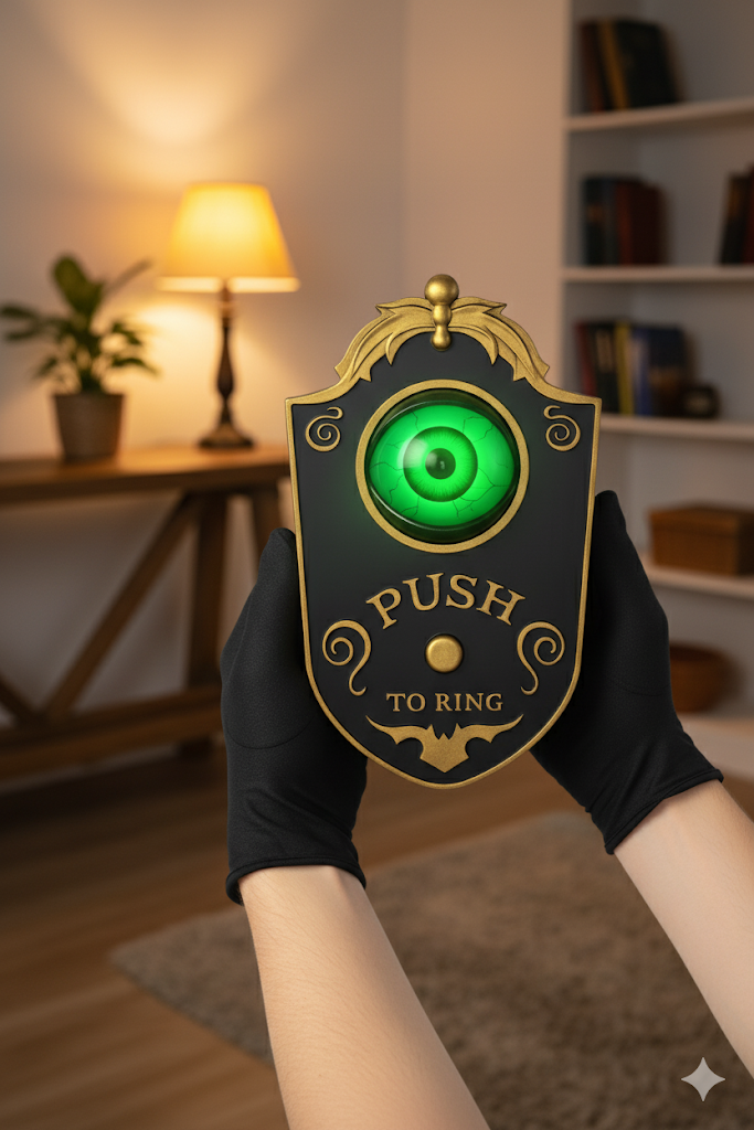 Cuando los visitantes presionan este timbre, un ojo cobra vida, se ilumina con un resplandor verde o rojo, y se mueve de un lado a otro. Mientras tanto, el ojo emite sonidos y frases espeluznantes, lo que lo convierte en la forma perfecta de darle un toque aterrador a la entrada de tu casa